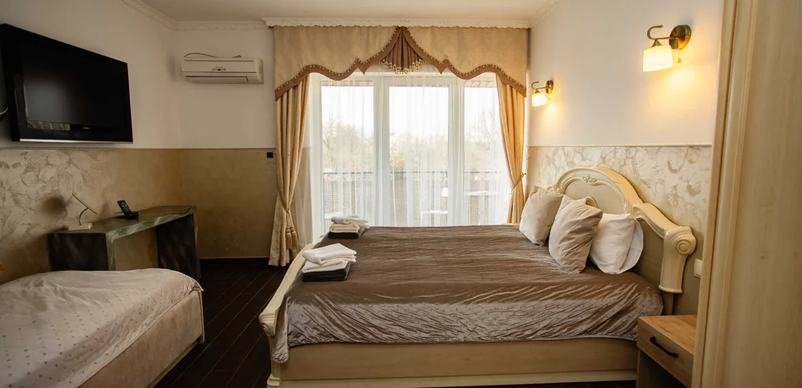 Номер розрахований на розміщення до 5-ти осіб. Вартість додаткового розміщення – 500 грн/ особу
